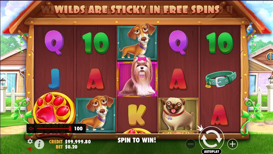 The Dog House gratis ist ein lustiges und spannendes Spiel, das Sie in die Welt der Hunde entführt. Das Spiel ist in einer Vorstadtumgebung mit grünen Rasenflächen und weißen Zäunen angesiedelt, die eine heimelige Atmosphäre vermitteln. Die Walzen sind mit hellen Farben und niedlichen Figuren geschmückt. Während des Spiels erscheinen verschiedene Hunde, jeder mit seiner eigenen Persönlichkeit. Gewinnkombinationen erwecken die Hunde zum Leben und machen das Spiel noch spannender.