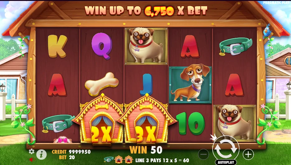 Im The Dog House online Casino haben Sie die Chance, bis zu 6750-fache Ihres Einsatzes zu gewinnen. Das gilt natürlich nur, wenn Sie das Glück haben, die gesamten Walzen 2, 3 und 4 mit 3x-Multiplikatoren zu vervollständigen. Vergessen Sie aber auch darüber nicht, dass Sie mit maximalem Einsatz spielen sollen, um den größten Gewinn zu erzielen.